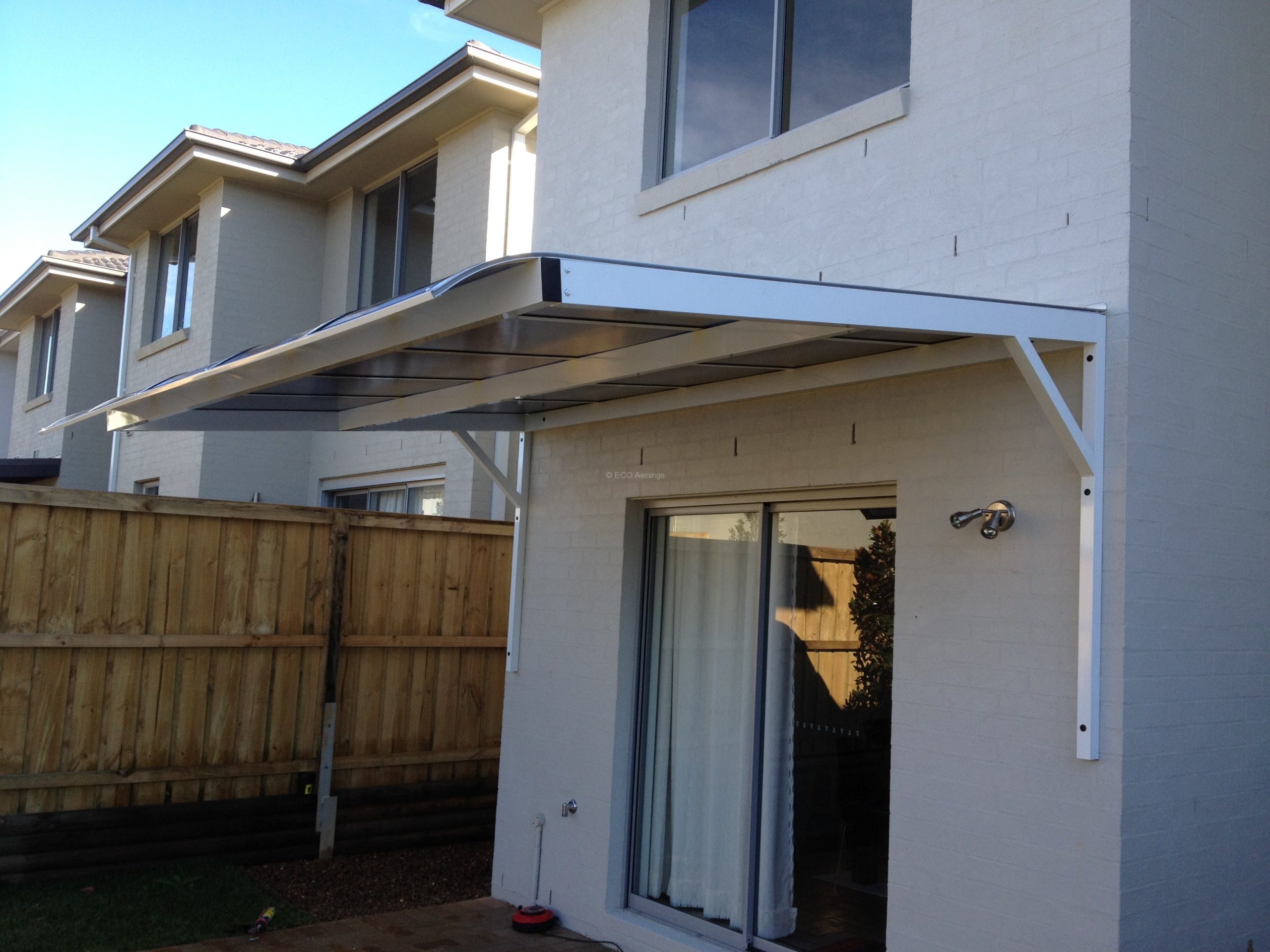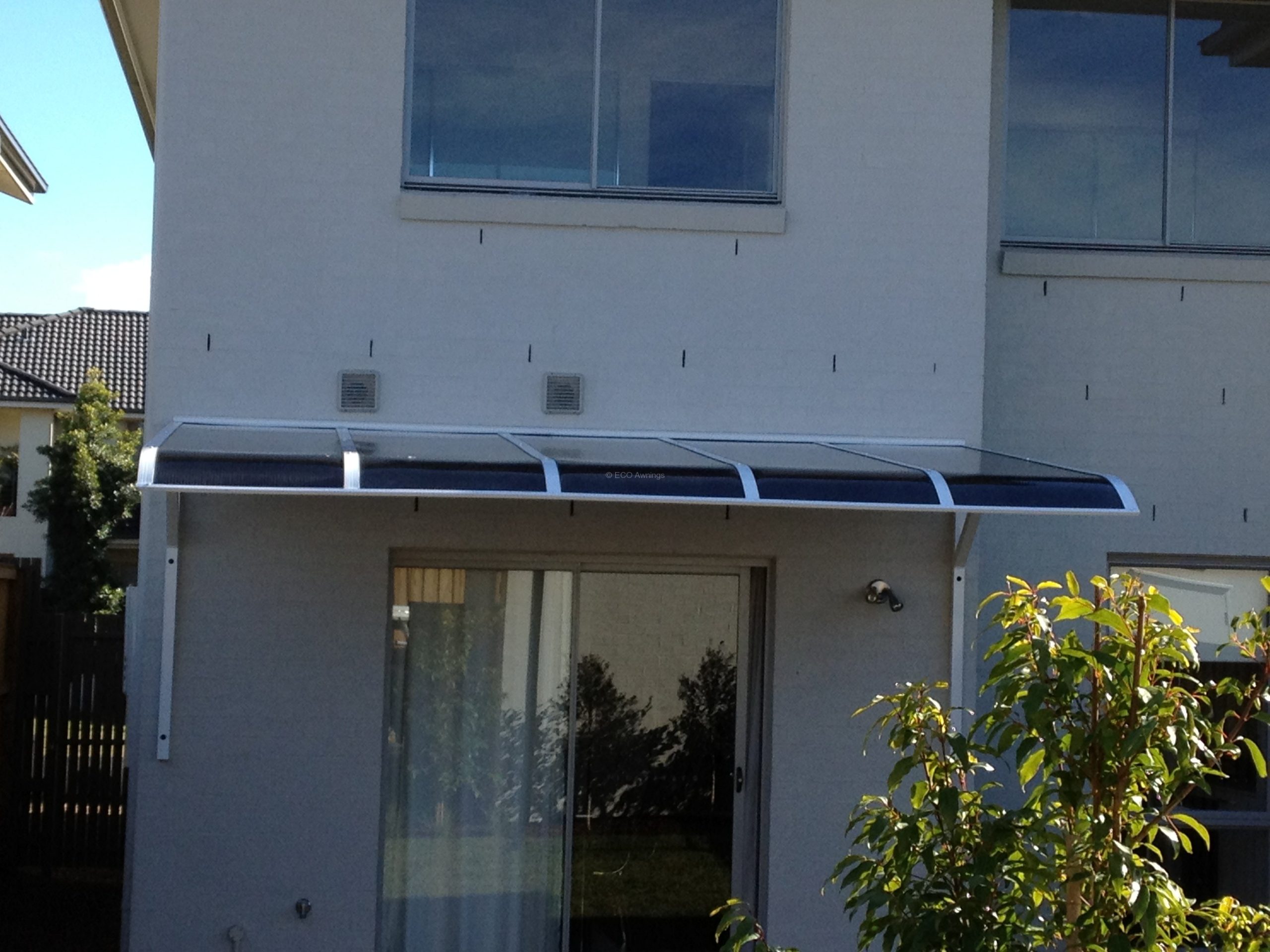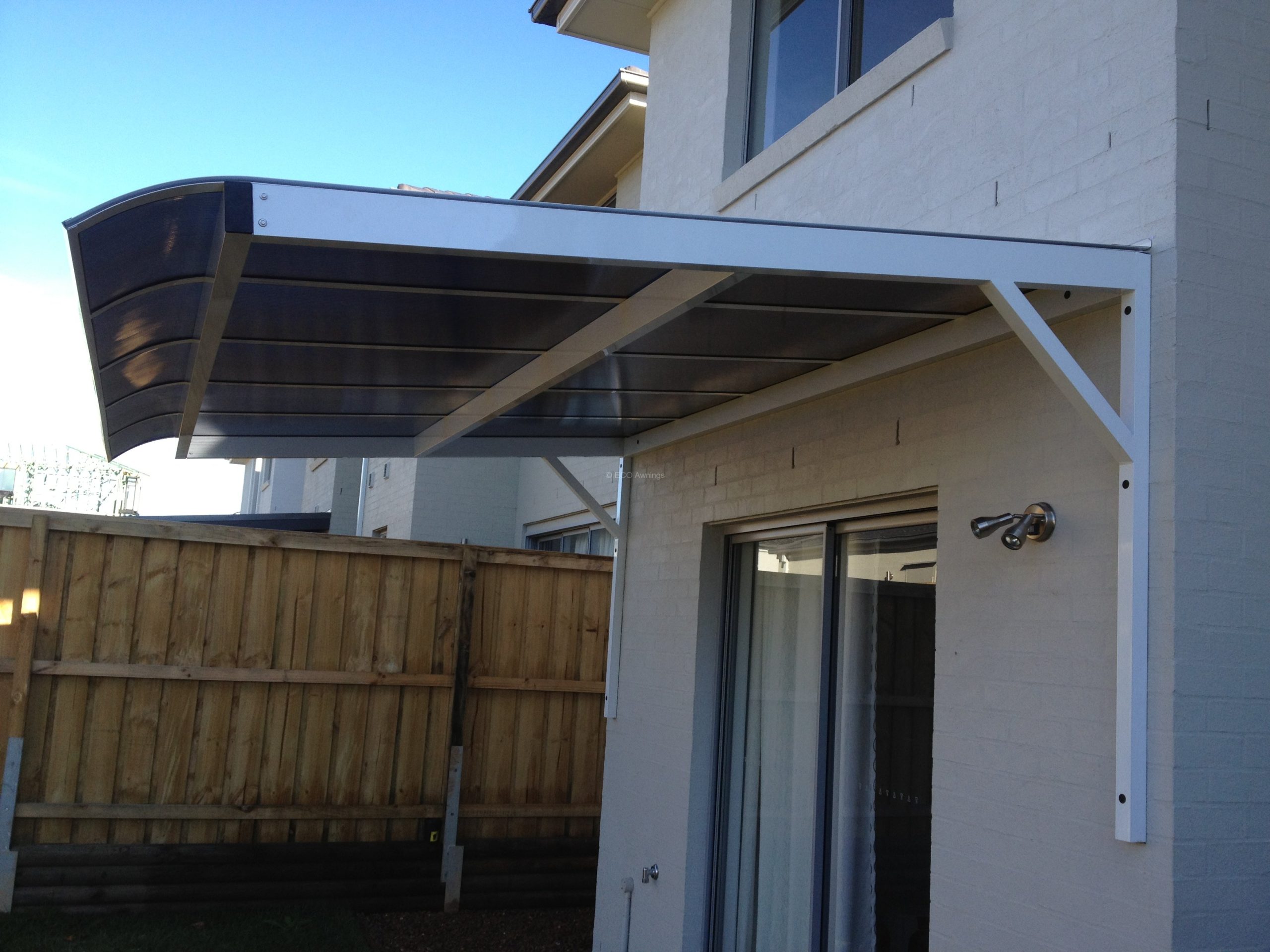 Canter Lever Twin wall Polycarb awnings with a bull nose