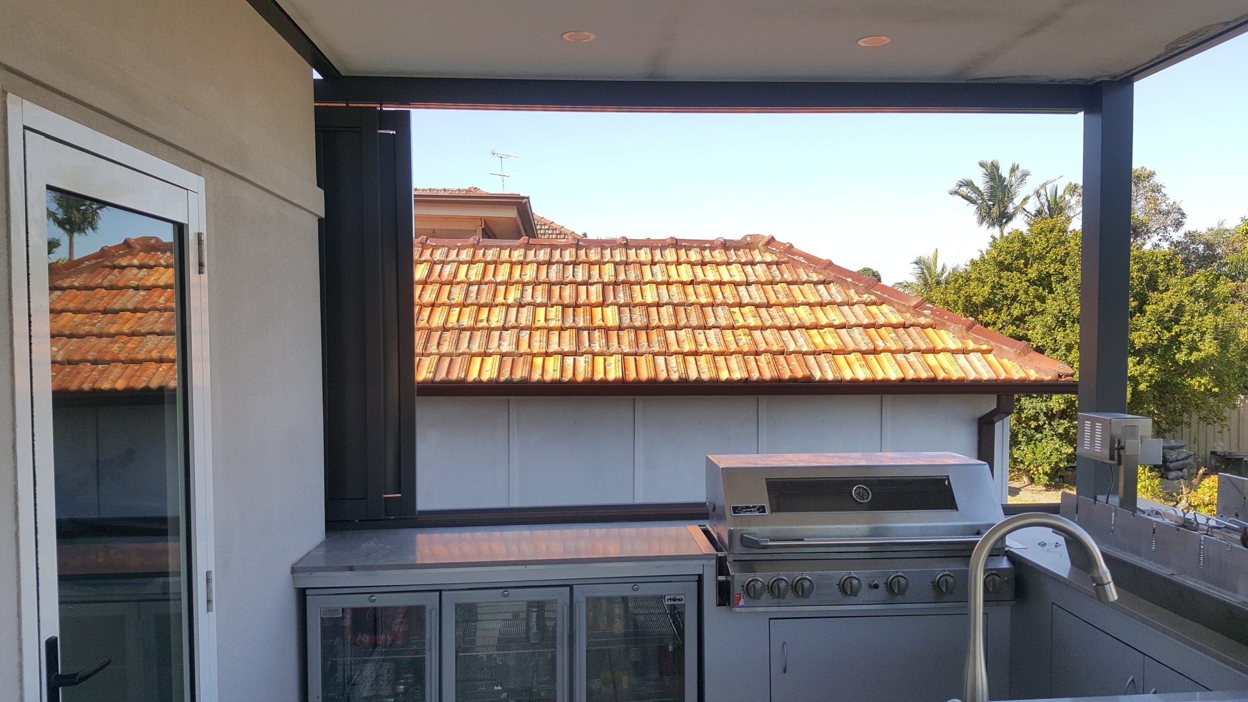 These Privacy Screen Louvers have Adjustable 160mm Vertical blades in 2 frame that slide to allow the the view to be seen from inside the house and given privacy from Neighbors the owner want to slide the louvers out of the way when he is using the BBQ